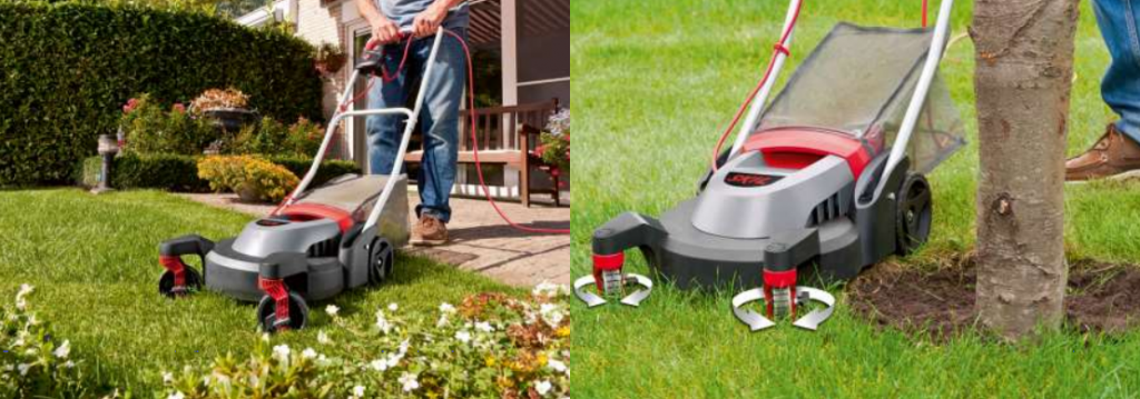 Новая газонокосилка отличается непревзойдённой манёвренностью, благодаря передним, вращающимся на 360 градусов колёсам, что позволит выполнять скашивание клумб и участков неправильных форм, а также объезжать различные препятствия в виде построек, деревьев или столбов. Помимо этого, модель имеет ещё целый ряд интересных особенностей: